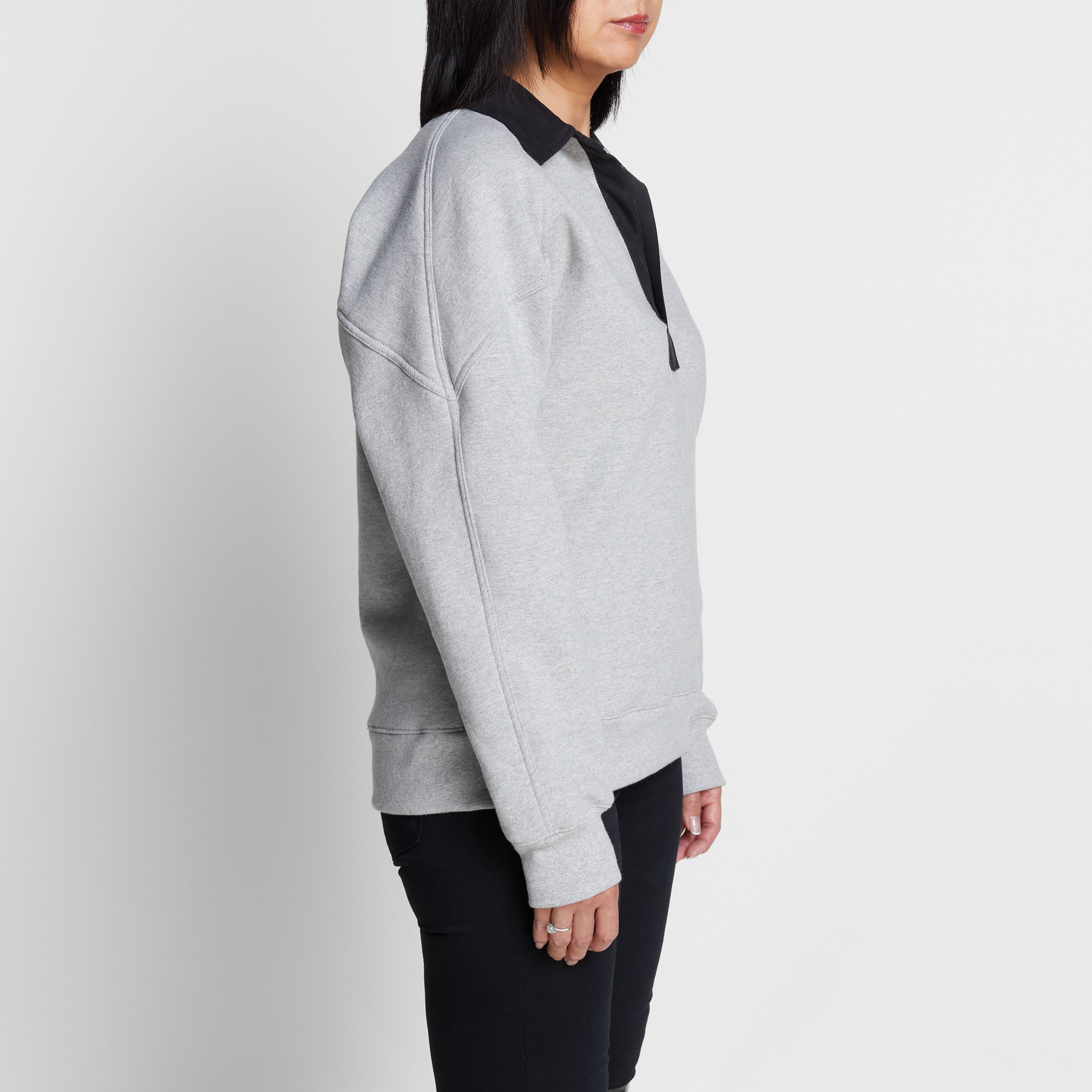 Ultimate comfort, ultimate chic. Made from a dead stock cotton fleece, this oversized sweatshirt features a contrast black collar and placket.
