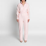 Inspired by 90s sportwear, this jumpsuit is a loose fit. Made from a dead stock cotton pique, this jumpsuit features a flattering elasticized waist and easy patch pockets.