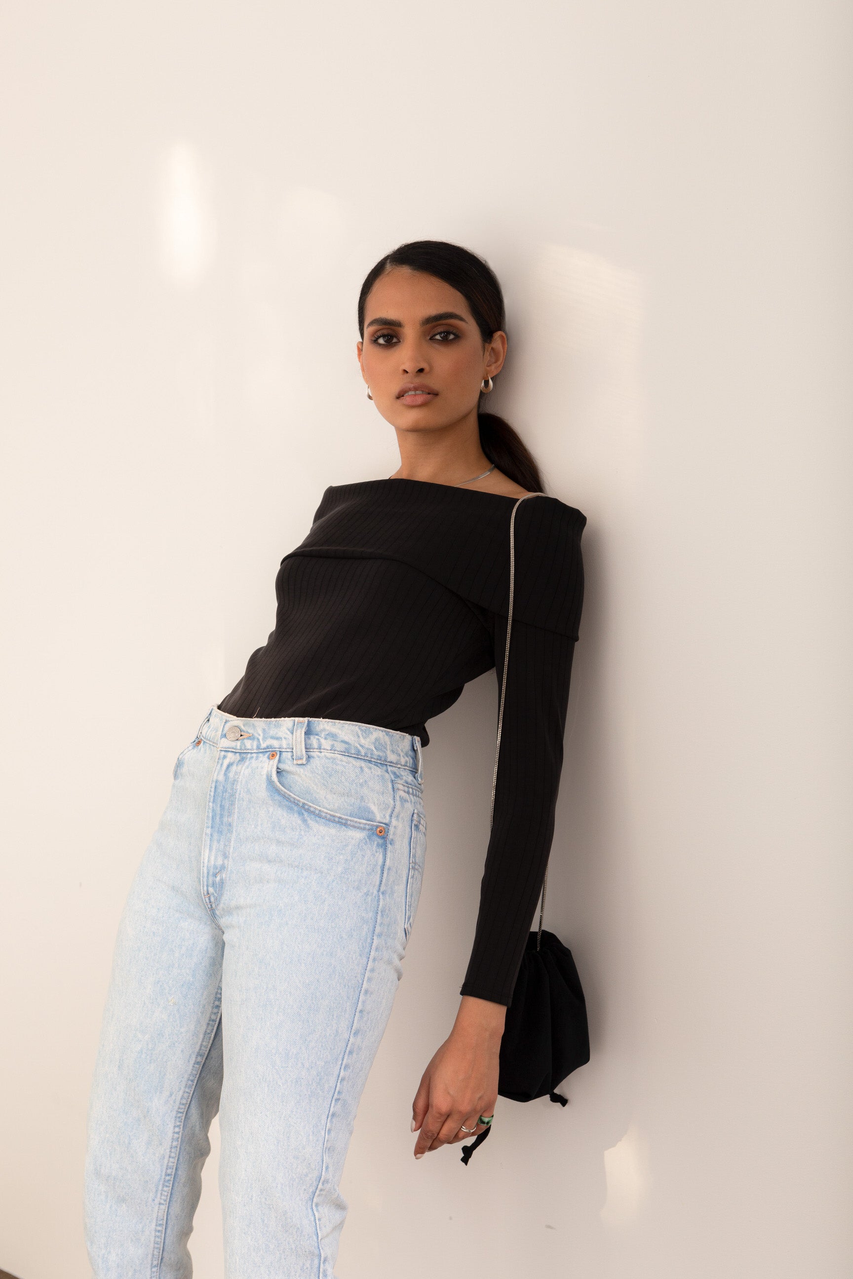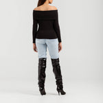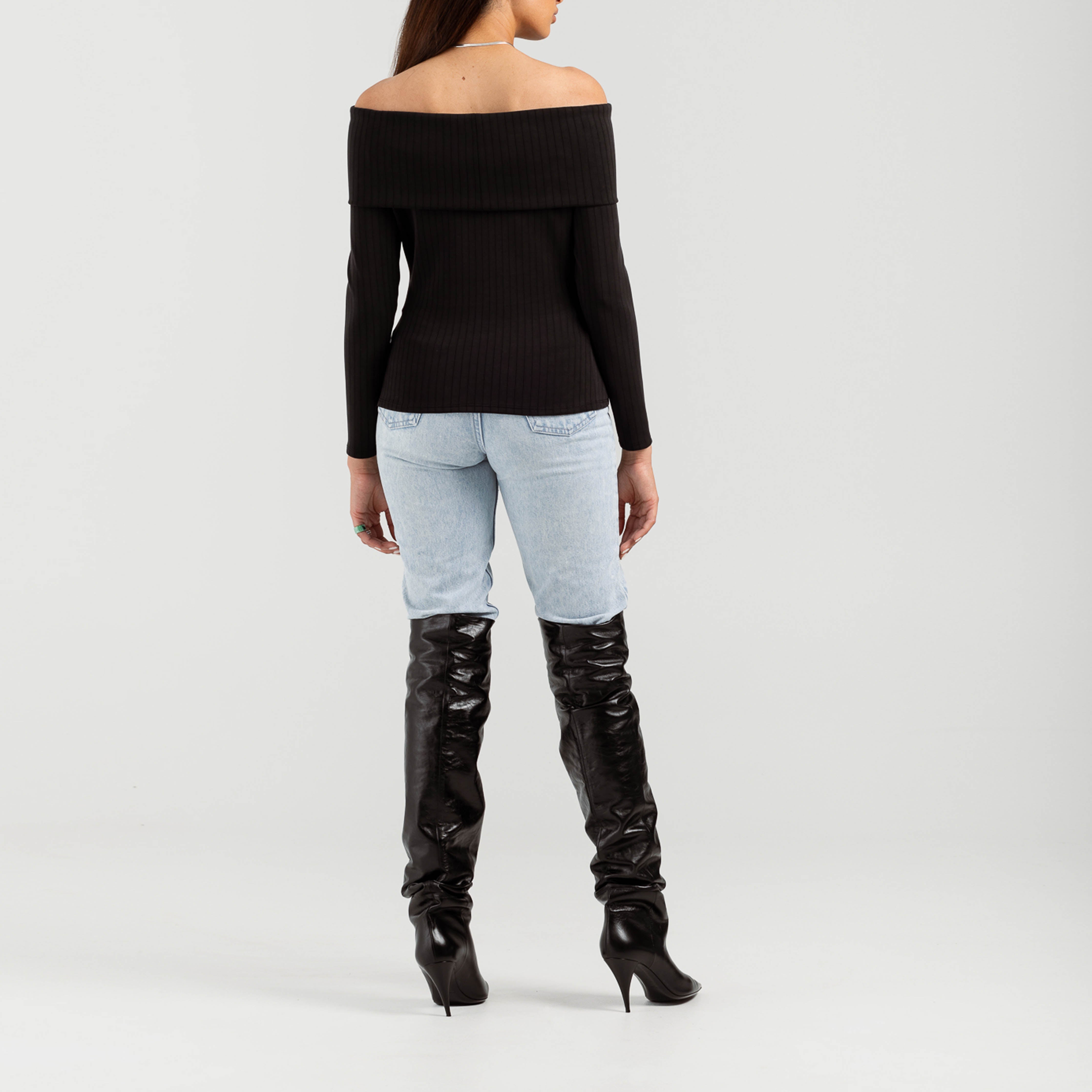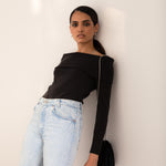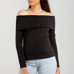 Slip into this classic off-the-shoulder top with ease. Crafted from a Tencel blend double knit, this piece will hug you in all the right places.
